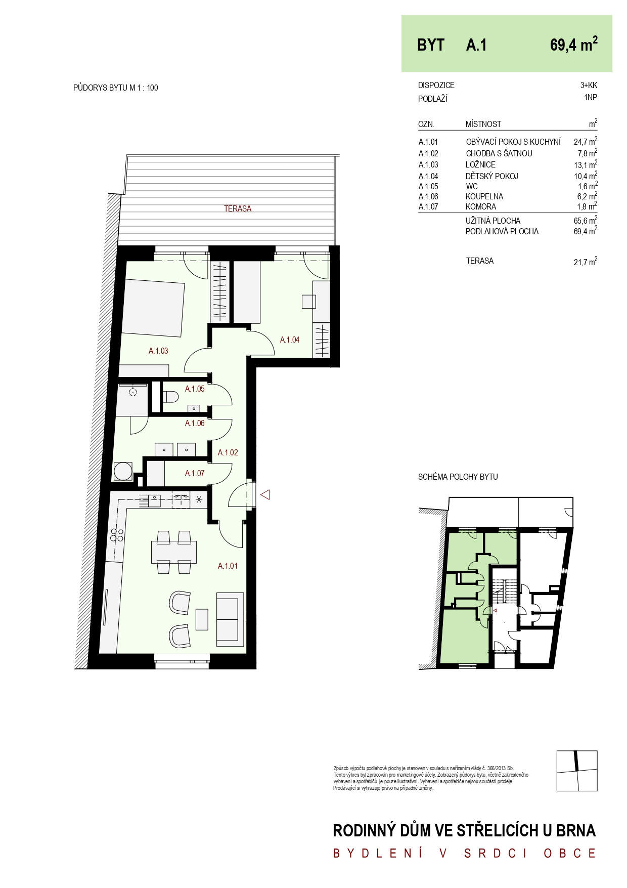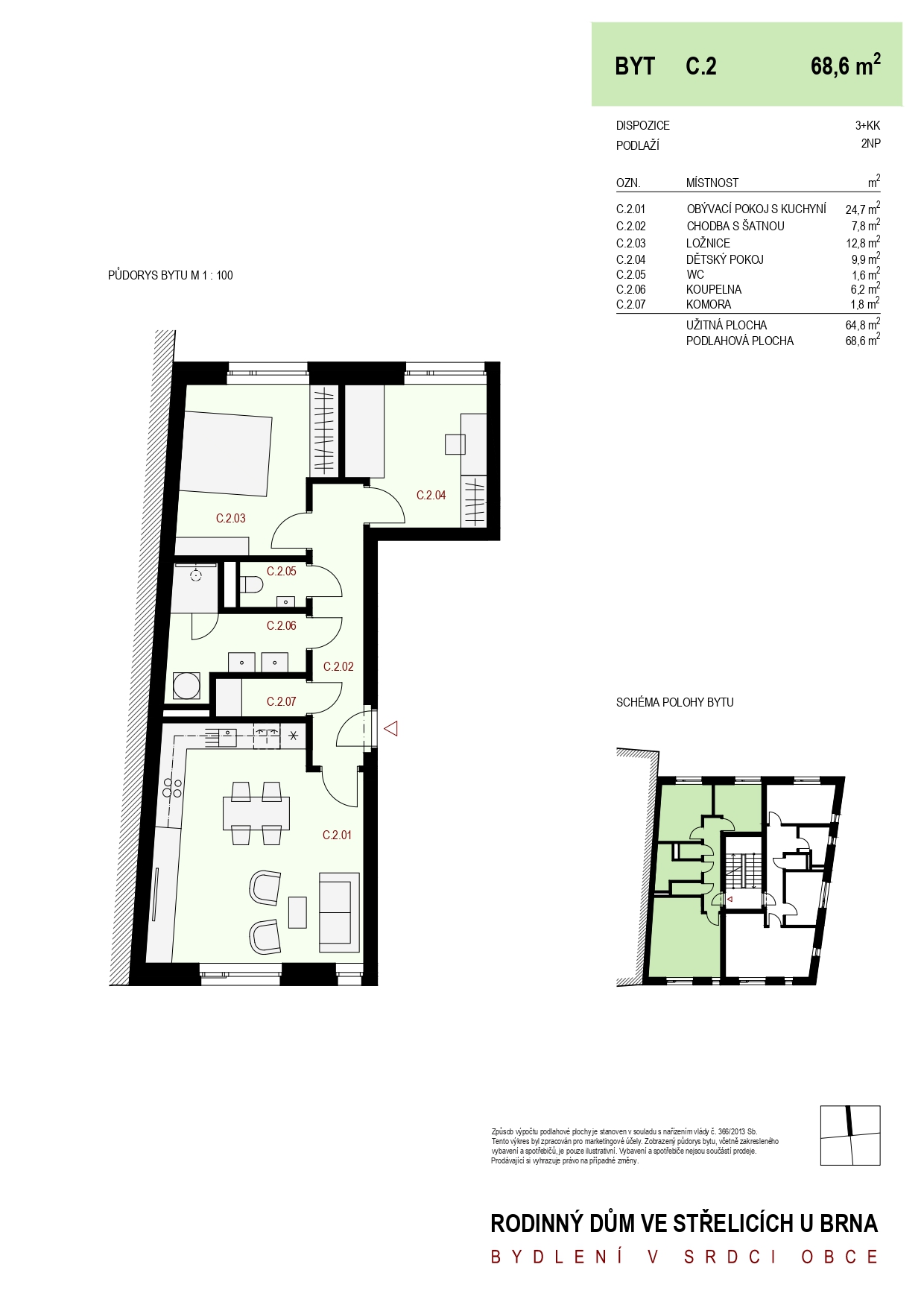 3 byty o dispozici 3+kk s parkovacím stáním ve dvoře v novostavbě v oblíbené lokalitě Střelice u Brna.